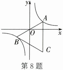 8. 如图,$A$是双曲线$y =\frac{3}{x} $上的一点,连接$AO$并延长,交双曲线的另一支于点$B,OA$与$y$轴的正