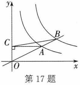 17. 如图,点$A(4,a)$在曲线$y =\frac{8}{x} (x > 0)$上,作直线$OA$交曲线$y =\frac{k}{x} (x > 0)$于点$B$,过点$A$作