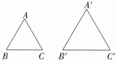 答案:对应相等 $\angle B = \angle B'$(或$\angle C = \angle C'$) $\triangle ABC \sim \triangle A'B'C'$