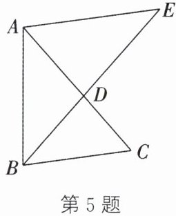 答案:5. $\because BD$ 是 $\angle ABC$ 的平分线, $\therefore \angle ABD = \angle CBD$. $\because AB = AE$, $\therefore \angle ABD = \angle E$. $\therefore \angle E = \angle CBD$. $\because \angle EDA = \angle BDC$, $\therefore \triangle ADE \sim \triangle CDB$. $\therefore \frac{AE}{CB} = \frac{DE}{DB}$. $\because AE = AB$, $AB = 6$, $\therefore AE = 6$. $\because BD = 4$, $DE = 5$, $\therefore \frac{6}{BC} = \frac{5}{4}$. $\therefore BC = \frac{24}{5}$