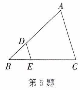 5. 如图,在△ABC中,点D,E分别在边AB,BC上.若$\frac{BD}{BA}=\frac{BE}{BC}=\frac{1}{3}$,则△DBE与四边形ADEC的面积比是