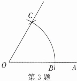 3. 如图,以点$O$为圆心,任意长为半径画弧,与射线$OA$交于点$B$,再以点$B$为圆心,$BO$长为半径画弧,两弧交于点$C$,画射线$OC$,则$\sin\angle AOC$的值为 (