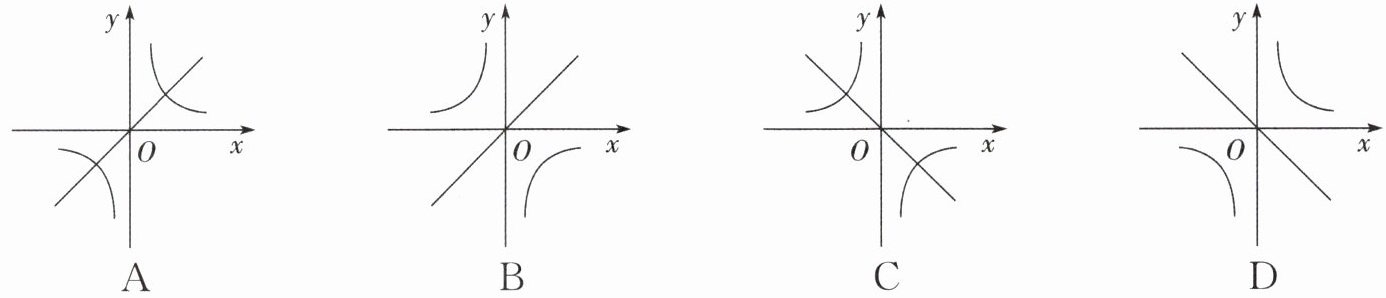 2. 在同一平面直角坐标系中,函数$y = x$和$y = - \frac{2}{x}$的图象大致是 (