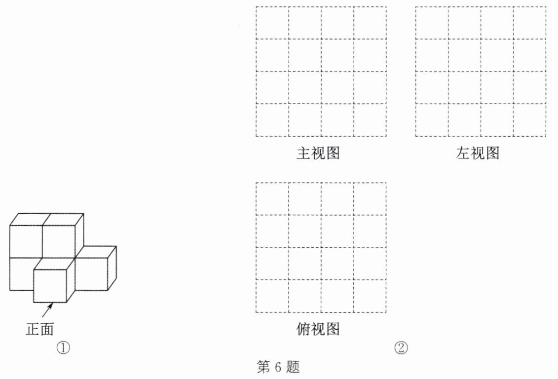 6. 如图①所示的几何体是由 6 个棱长均为 1 cm 的小正方体组成的.