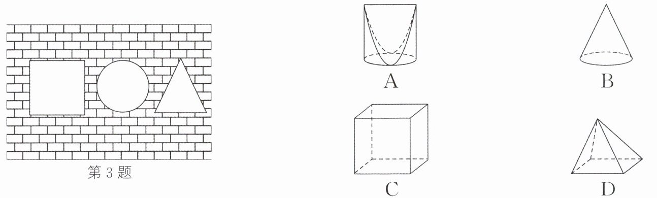 3. 学生玩一种游戏,需按墙上的空洞造型摆出相同姿势才能穿墙而过,否则会被墙推入水池.类似地,一个几何体恰好无缝隙地以3个不同形状的“姿势”穿过“墙”上的3个空洞
