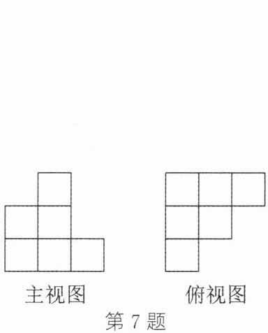 7. 用若干个小正方体搭成一个几何体,主视图和俯视图如图所示,则最少需要