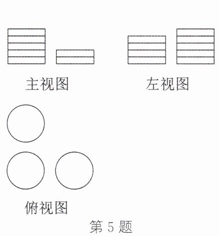 5. 一张桌子上重叠摆放了若干枚一元硬币,从三个不同方向看这些硬币得到的平面图形如