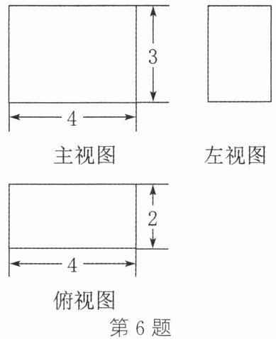 解:由三视图可知该几何体为圆柱,底面直径为4,高为6。