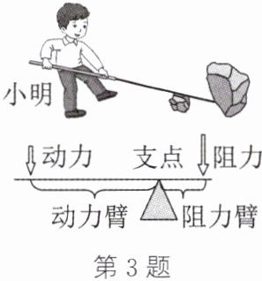 3. 如图,小明想要用撬棍撬动一块石头,已知阻力为1500 N,阻力臂为0.4 m. 设动力为$y$ N,动力臂为$x$ m(杠杆平衡时,动力×动力臂=阻力×阻力臂,图中撬棍本身所受的重力忽略不计).