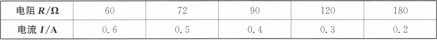 验证:当$R = 72\Omega$时,$I = \frac{36}{72} = 0.5A$;当$R = 90\Omega$时,$I = \frac{36}{90} = 0.4A$;当$R = 120\Omega$时,$I = \frac{36}{120} = 0.3A$;当$R = 180\Omega$时,$I = \frac{36}{180} = 0.2A$,均符合表格数据。