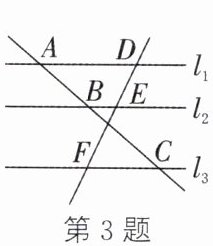 3. 如图,直线$l_1// l_2// l_3$,$AB=\frac{2}{5}AC$,$DF = 10$,则$DE =$