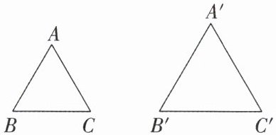 答案:三组对应边$\frac{AB}{A'B'}=\frac{BC}{B'C'}=\frac{AC}{A'C'}\therefore \triangle ABC \sim \triangle A'B'C'$