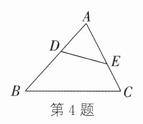 4. 如图,点$D$,$E$分别在$AB$,$AC$上. 若$AB = 2AE$,$AC = 2AD$,$DE = 5$,则$BC =$
