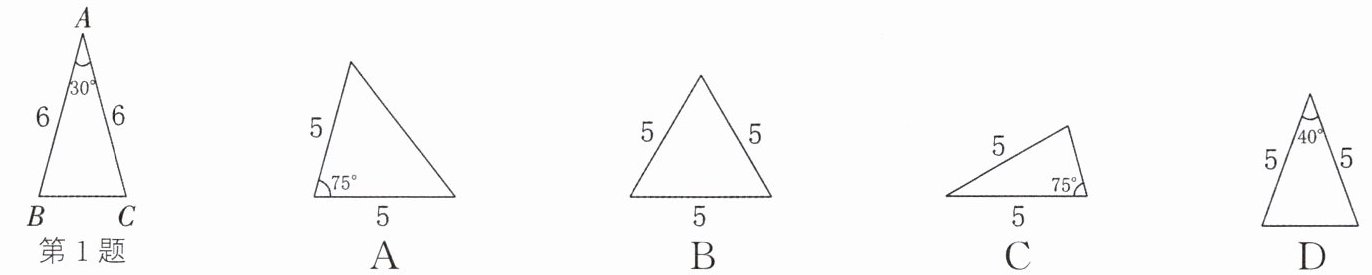1. 如图所示为$\triangle ABC$,下列四个三角形中,与$\triangle ABC$相似的为 (