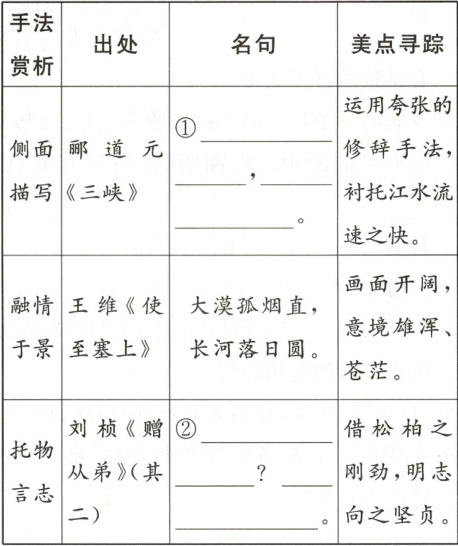 20. 品经典古韵,赏文化之美。下面是小优归纳的本册古诗文笔记节选,请根据表格提示将空缺处补充完整。