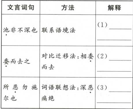 16. 参考表格提示的方法,解释下列加点词。(4分)