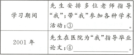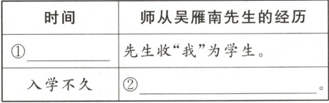 7. 一课一得训练 小语依据时间顺序,以表格的形式将“我”师从吴雁南先生的重要情节进行了梳理,请你帮忙完善。(4 分)