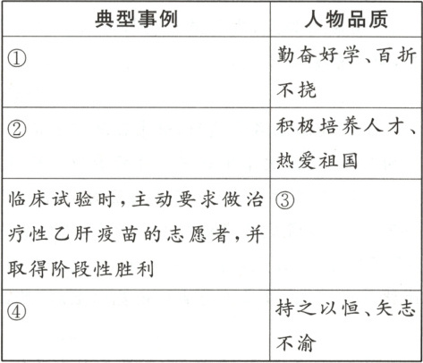 5. 本文通过典型事例表现了闻玉梅院士的精神风貌。请概括事例,归纳人物品质,结合选文完成下面表格内容。(4分)