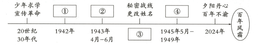 1. 借助思维导图,第一小组要梳理沈知影的革命成长轨迹。请你拟写小标题和补充时间点。(4分)