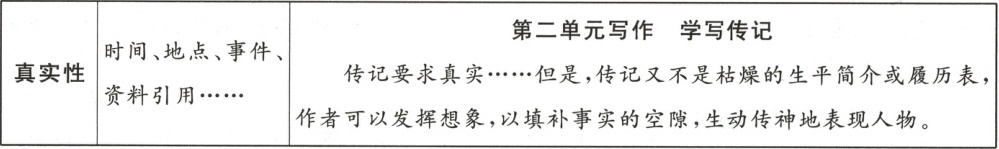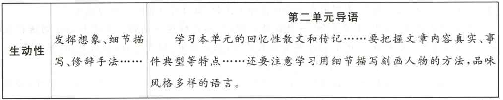 2. 阅读综合实践一 迁移 请借助第二单元导语和传记的文体特点,结合本文的具体语句,分析本篇传记作品的真实性和生动性。(4分)