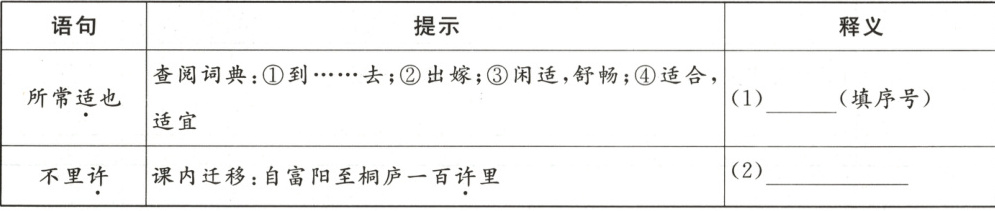 1. 学习小组在研读两则材料时,对下列句子中的加点词不太理解。请你结合提示释义。(4分)