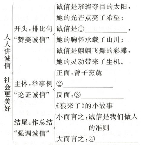 4. 小语和你在一个小组,他将代表小组参加班级的演讲会,请你帮他完成以下演讲稿的提纲。(4分)