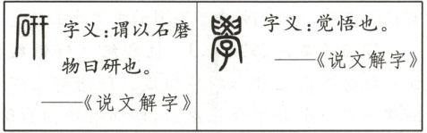 8. 新考法 解决实际问题 学校组织学生设计研学活动图标,但研学图标中央需要添加一个主题字。请从“研”“学”二字中选择其一,结合下面的字义,说明理由。(4分)