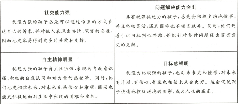 B. 抗逆力强的孩子能在逆境中更好地发挥自己的潜能,也更容易获得成功。