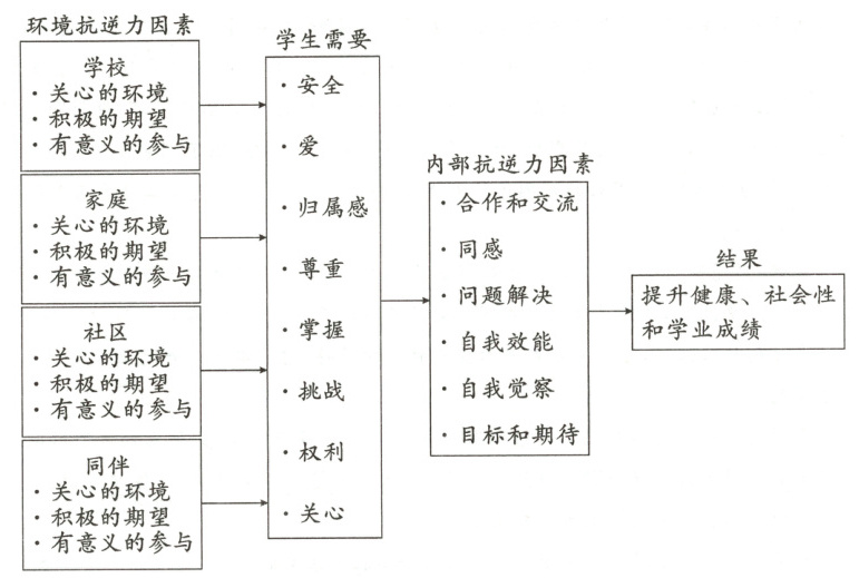 材料二:抗逆力强的孩子更自信,性格更乐观,目标更坚定,意志力更坚强,同时人际关系也更好,更有领导力,未来的生活也更容易美满幸福。可以说,具有强大抗逆力的孩子能在逆境中更好地发挥自己的潜能。心理学家约翰·波拉德提出,有四种个人优势属于抗逆力积极发展的结果。这四种优势分别为: