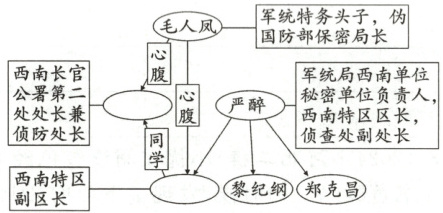 3. 下面是小说《红岩》中出现的特务人员的人物关系图,请完成下面的填空。