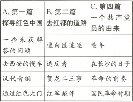 (填字母)篇;想要了解毛泽东的人生经历,我们可以阅读(2)