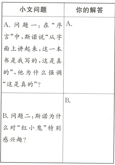 (2)【互动交流会】小文在读《红星照耀中国》一书时,有一些问题弄不明白,于是借助互联网,将问题发表在网络上。如果你看见后,会怎样帮他解答?请把你的解答写在表格中的相应位置。