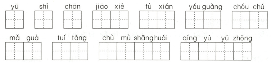 根据《背影》课文内容及课后字词积累,结合拼音写出汉字,根据汉字写出拼音。注意“迂”“搀”“踌躇”“颓唐”等字的写法,“藉”“簌”“屑”的读音分别为jí、sù、xiè。