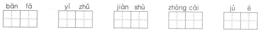 根据拼音和八年级上册语文知识积累,依次写出对应的汉字。“bān fā”为“颁发”;“yí zhǔ”为“遗嘱”;“jiàn shù”为“建树”;“zhòng cái”为“仲裁”;“jù é”为“巨额”。