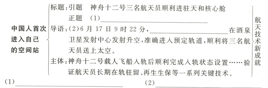 (2)导语需点明发射主体,结合航天常识及课文内容,发射的是“神舟十二号载人飞船”。