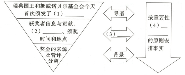 答案:(1)首届诺贝尔奖 (2)颁奖机构 (3)主体 (4)由主到次
