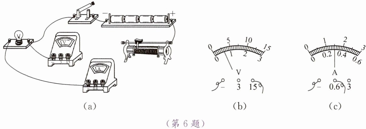 6. 在“测量灯泡的电功率”的实验中,提供的器材有“3.8 V ? A”的灯泡、“10 Ω 1 A”的滑动变阻器、四节新干电池等。