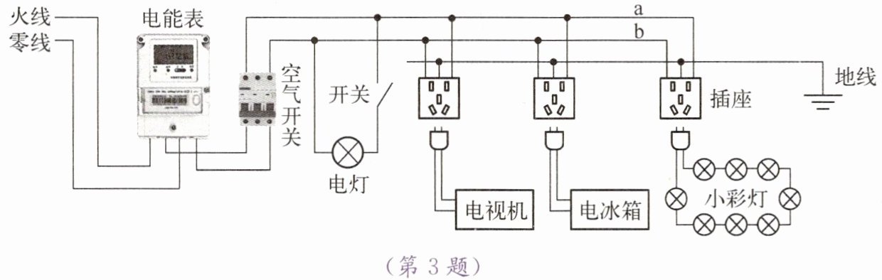 3. 小明家的家庭电路简图如图所示,下列说法中错误的是 (