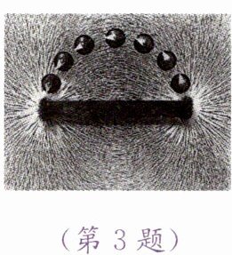 3. 将玻璃板平放在磁体上,在玻璃板上均匀地撒上一层铁屑,轻轻敲击玻璃板后,再在玻璃板上放一组能自由转动的小磁针,观察到如图所示的情景。下列说法中错误的是 (