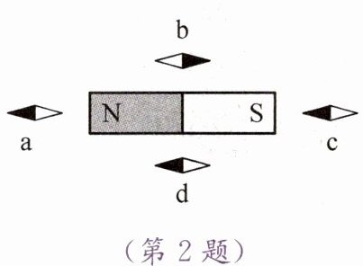 2. 如图所示,条形磁体周围放着能自由转动的小磁针 a、b、c、d,这些小磁针静止时磁极的指向不正确的是(小磁针涂黑的一端表示 N 极) (