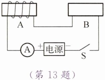 3. 电源正负极:根据安培定则(右手螺旋定则),通电螺线管左端为N极,四指弯曲方向为电流方向,可知电流从螺线管左端流入、右端流出,因此电源左端为正极,右端为负极。