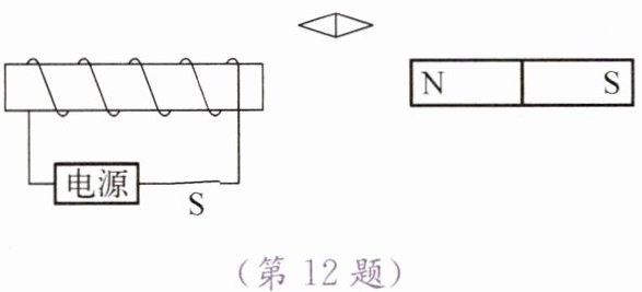 1. 条形磁体与通电螺线管的磁极关系:条形磁体左端为N极,右端为S极。根据同名磁极相互排斥、异名磁极相互吸引,通电螺线管右端与条形磁体左端(N极)相邻,故通电螺线管右端为S极,左端为N极。