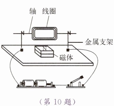 10. 如图所示是小华探究如何让线圈转起来的实验装置图,线圈能够转动的原因是