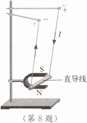8. 课堂上,老师做了如图所示的演示实验,给直导线(铝棒)通电,直导线运动起来。