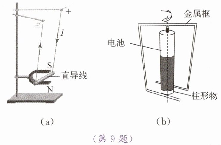 9. (1) 按图(a)组装实验器材,给直导线通电,直导线向左运动,这说明