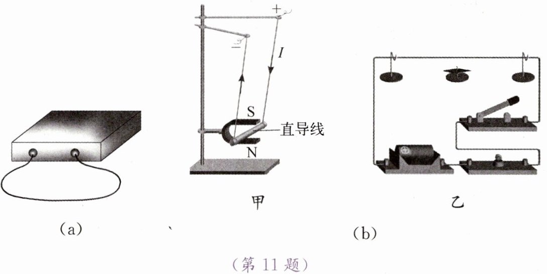 11. 如图(a)所示,一个不能打开的盒子外面露出一段细长的导线。在不损坏导线的情况下,用图(b)中甲、乙两个实验所对应的结论来判断导线中是否有电流,下列说法中正确的是 (