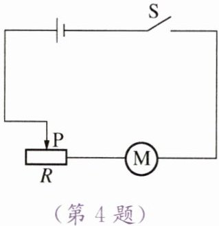 4. 如图所示的电路中,要增加直流电动机的转速,滑动变阻器的滑片 P 应向