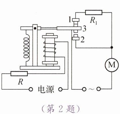( 选填“1”或“2”)接触,电动机的转速变小,电梯变慢,从而达到节能目的。