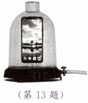 $m/s$。将一只手机置于密闭的玻璃罩内,拨通玻璃罩内的手机,发现手机发出的铃声和闪烁的光(如图所示)。逐渐抽出玻璃罩内的空气,发现铃声逐渐变弱直至消失而闪烁的光依然存在;再让空气逐渐进入玻璃罩内,发现铃声逐渐变强并仍然有闪烁的光,这说明