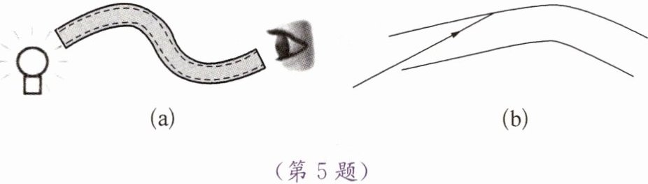 光射出。请在图(b)中作出光路图,表示光纤传输光信号的原理。